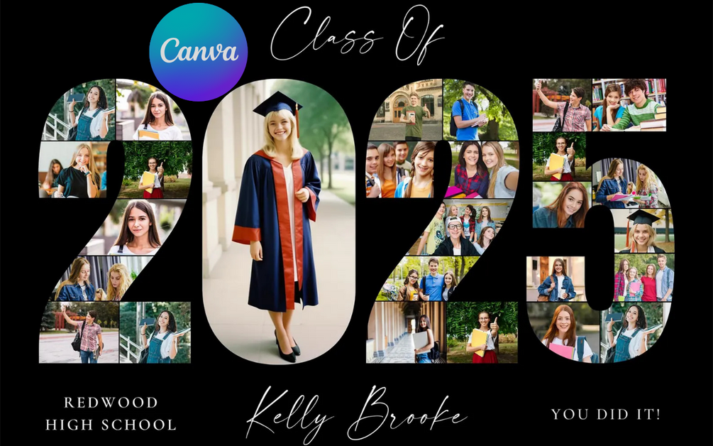 2025 Graduation Photo Collage Welcome Sign Template, Class of 2025, Party Poster Display, Graduation Gift for Seniors, Photo Board Posters